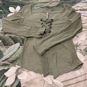 Free People Olive Long Sleeve Top