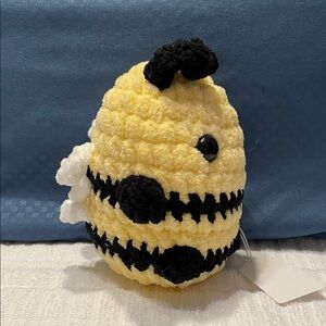 Handmade adorable crocheted bee plush in yellow and black. Perfect for decor or play.