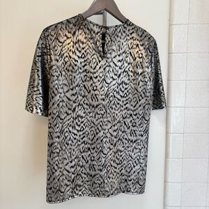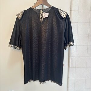 Vintage Lauren Lee Black and Gold Blouse Medium Animal Print