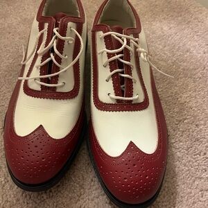 FootJoy DryJoys ECL Leather Golf Shoes Mens 9 Medium Red White Spiked