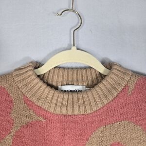 Marimekko Retro Unikko Sweater Vest Khaki Pink Floral Crewneck 100% Wool Small
