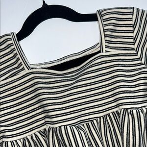 Chic black and white striped dress by Vignette. Ideal for casual wear. More of a sweater/sweatshirt dress (soft but heavier fabric), very warm
