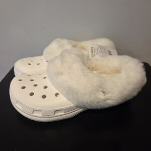 CROCS Slippers with Cream Faux Fur