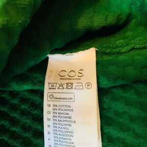 COS Size S Long Cardigan Green 3/4 Sleeves, Cotton Blend Machine Wash Excellent