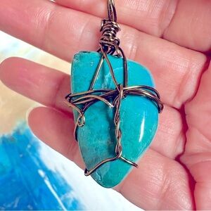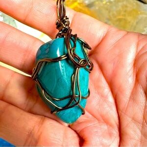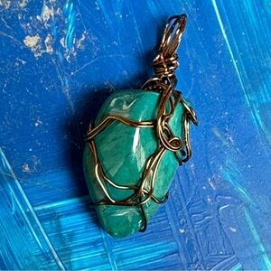 The wire wrapped gemstone also has a very large bail to accommodate many different chain or cord sizes.