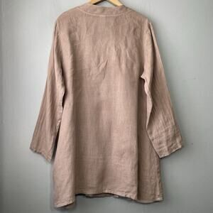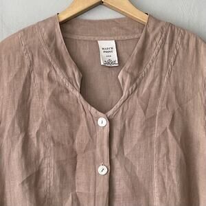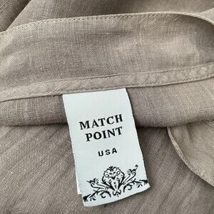 Match Point USA long sleeve light brown button up 100% linen tunic top in Excellent pre-owned condition! NOTE: color is most like close up photos of tags.