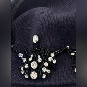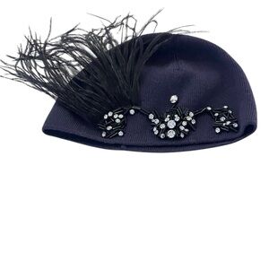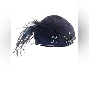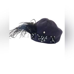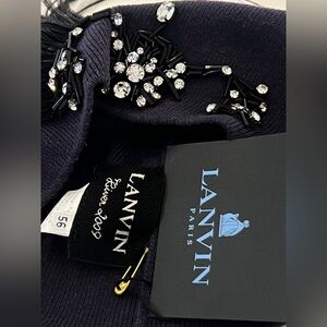 This is a new with tag, Lanvin purple kint hat embellished with rhinestones and black feather in size 56. 9" lay flat without stretching. Material is 100%wool.
