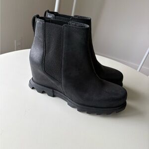Chic black ankle booties with rugged sole. Ideal for versatile wear. Durable and stylish. Excellent condition! Size 10.