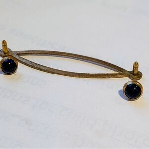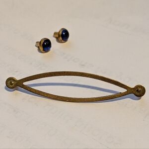 This elegant women's brooch features a stunning gold finish with deep blue accents, perfect for adding a touch of sophistication to any outfit. Vintage with wear as seen in photos. Pin brooch. Untested glass/stone.