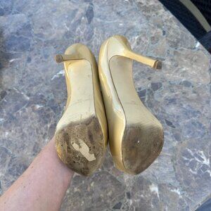 Enzo Angiolini Inner Platform Pump Shoes Peep Toe Tan Patent Leather - 7.5