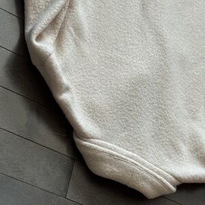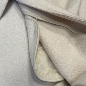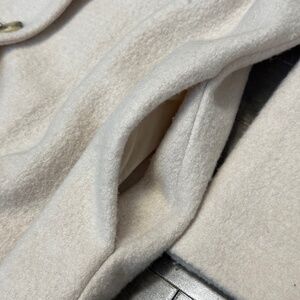 Thick and good weight, cuts the wind quite well. Double flat seams but unlined. Pockets (of the same wool).