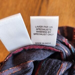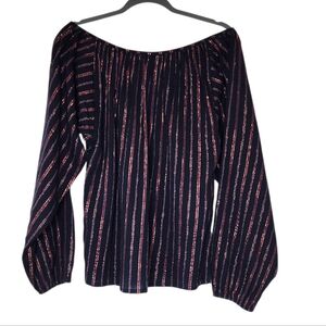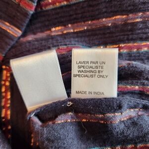 This set is navy with burgundy, turquoise, and metallic stripes