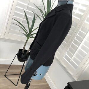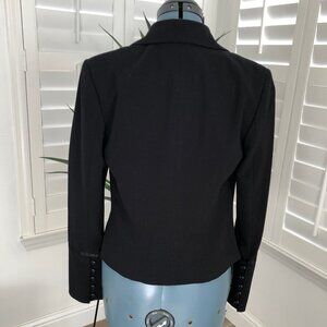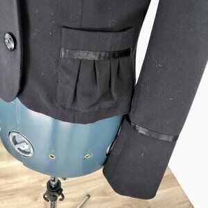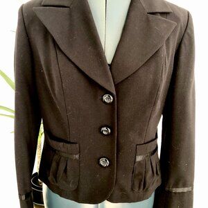 Bisou Bisou Michele Bohbot Blazer. Absolutely DARLING black cropped blazer with button detail at wrist and rounded gathered pockets. Three buttons down the front. Fully lined. This will look so cute with a dress or jeans which is how I've worn it.