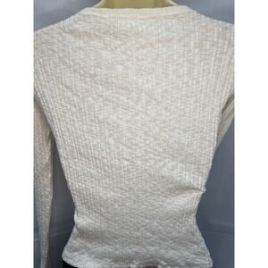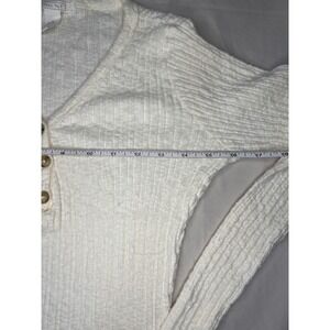 FULL TILT Ribbed Henley Long Sleeve Top Cream Textured Button Up Casual Size L