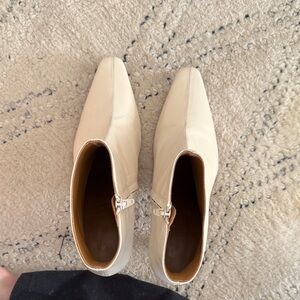 STAUD Cream Heeled Ankle Boots