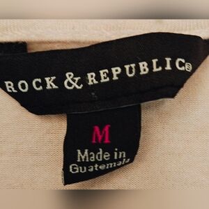 Y2K Rock & Republic Studded Rock White & Blue Graphic Tee w Strappy Neck Detail. Great condition. Size medium and measurements are in photos. Graphic front w text and wings. Stud detailing. Strappy at neck. #grunge #y2k #angelwings