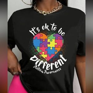 Nwt heart puzzle colorful It’s ok to be different tee
