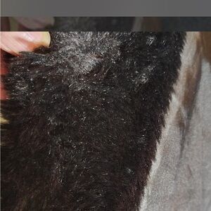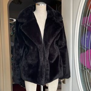Elevate your style. CASTING LA Black faux fur jacket with collar, clasp closure (One is missing as shown in the photo where my thumb is) Size Large. Very Teddy Bear like.#fauxfurjacket #wintercoat #teddybear #so