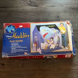 This is the coolest !! I had it set up in my house for years because I’m a big kid at heart , but it’s been boxed now for a long time as I do not have the space in my new place :( 40” inches long 30 inches wide 44” inches high Quite sturdy for how old it is The vinyl shows some wear has a couple rips but sets up and takes down extremely easy All pieces are complete except one small connector tube which I’ve taped when in use but would be super easy to get that are the hardware store but I’ve used it without no issues . It’s wrinkled with time those settle , it’s so fun with care it will last a long time more . My home is completely smoke free , but I don’t know if this smells of old cig smoke it’s very faint but you can smell it a bit when you set it up . , just being completely transparent . Comes with original box and set up sheet . Box shows lots of damage