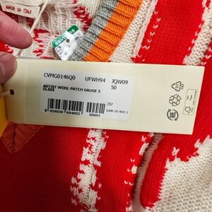 This vibrant virgin wool vest boasts a myriad of colours and influences through its floral, animal, and abstract patterns in a tactile blend of jacquard, intarsia, and velvet inserts. A fascinatingly contrasting piece from Marni's Artists' Wardrobe collection, inspired by works by Nigerian artists Slawn and Soldier.