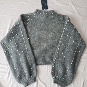Zara Crop Pearl Sweater Small