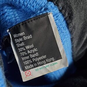 Obermeyer Knit Beanie Blue Wool Blend Women's Braid Tassels Fleece Lined Hat