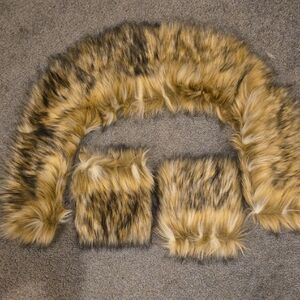 Tasha Polizzi Teal and Brown Cape with Faux Fur Trim