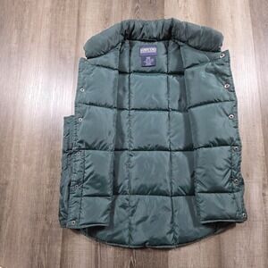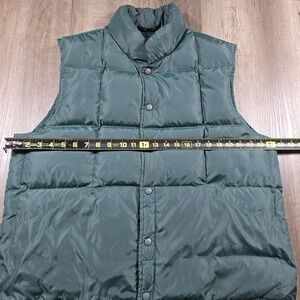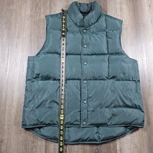 Vtg Lands End Unisex Goose Down Puffer Vest Snap Button Size Large Hunter Green