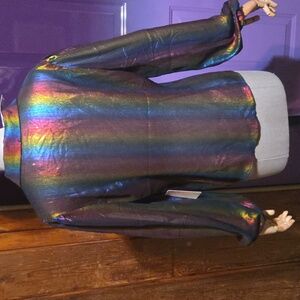 brand new with tags sheer rainbow color button up. metallic/shiny rainbow stripes. elastic sleeves give super cute puffy detail. size M.