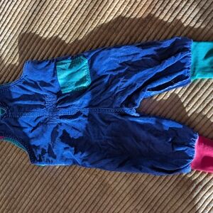 Bright and playful vintage baby overalls in a colorblock 100% cotton corduroy. timeless classic in excellent condition