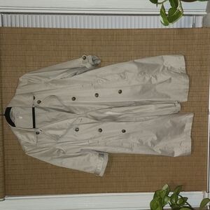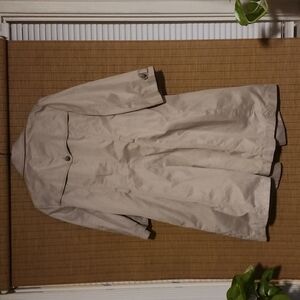 Trench coat, quarter sleeves. Belt is not included. Pockets in the front. Size large