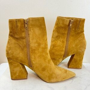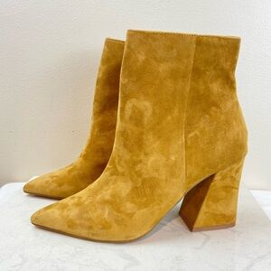Steve Madden Matilda Mustard Suede Leather Ankle Booties Block Heel Pointed Toe