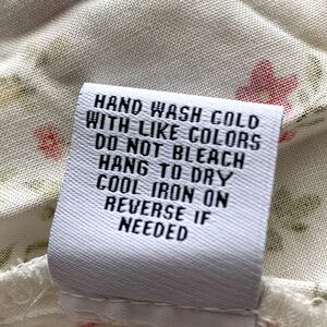Excellent used condition. Pit to pit 15”, Empire waist flat lay 11”, Length from shoulder 51-54”. Features an elastic stretch neckline with a tied tassel, elastic cuff sleeves and a smocked empire waist for stretch. 100% Rayon. Colors are cream, greens, red, pink and gold.