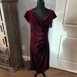Simple sophistication in soft velvet, this XSCAPE off-the-shoulder midi dress is an elegant option for a party.