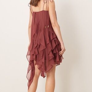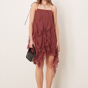 ASOS tie strap ruffle mini dress chocolate brown NWT size 10