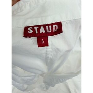 Keywords: Staud dress, shirt dress, maxi dress, cotton dress, button front, tailored, classic, sophisticated, brunch outfit, garden party, daytime event, summer dress, versatile, white dress