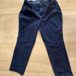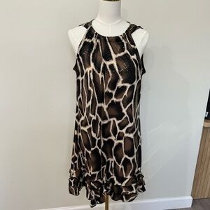 Chic Cache top with bold black and silver stripes. Perfect for a stylish look. Size small tag missing.