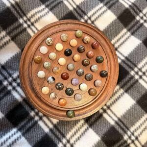VTG Solitaire Board Game Set Semi-Precious Gemstone Stone Marbles Kenya Wood