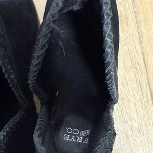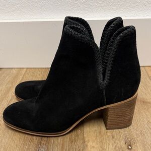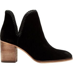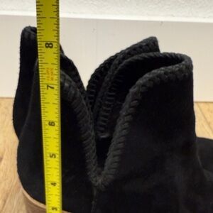 Frye Phoebe Black Suede V-Cut Ankle Boots Braided Trim Stacked Heel Western 10
