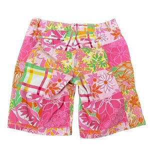 Lilly Pulitzer Pink Floral Patchwork Resort Fit Bermuda Shorts Golf Size 8
