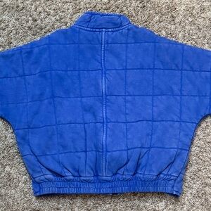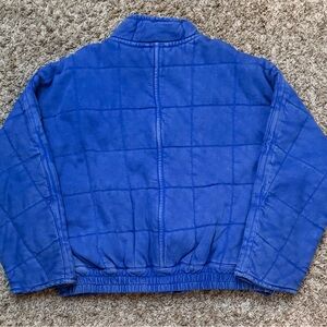 Free People Quilted Blue Zip Jacket with Pockets Relaxed Fit Long Sleeve S/P