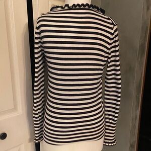 Boden Bernadette Striped Navy and White Ruffle Trim Sweater Size 10