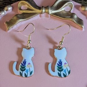 Enamel Floral Accent Cat Earrings NEW!