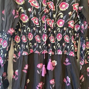 Just Bellina Dark Brown Black Pink Floral Long Sleeve Midi Dress Sz Medium