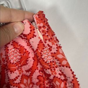 SilkLand Pink and Red Patterned Beaded Mini Skirt Silk and Linen size 10