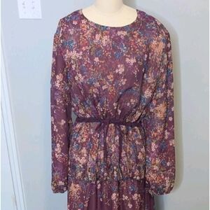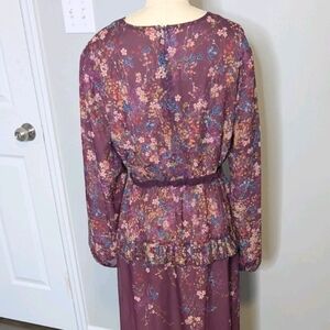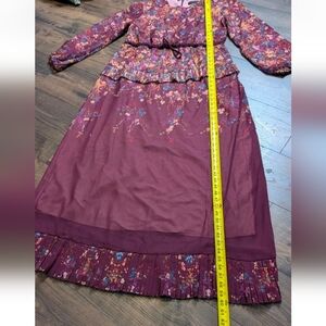 Annahhariri Maroon Ruffle Floral Maxi Dress in Deep Purple Size 18