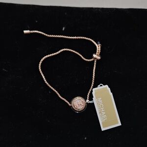 Chic bracelet with iconic MK logo. Gleaming rose gold finish. Ideal for any occasion.