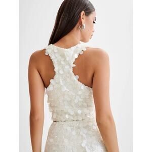 Meshki Maude Sequin Racer Crop Top Ivory Statement Party Small