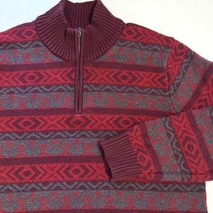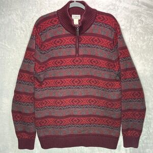 Keywords: LL Bean sweater, mens sweater, tall size, holidays, Christmas, preppy, fair isle, 1/4 zip, cotton knit, winter wear, casual comfort, outdoor apparel, classic style, holiday sweater, heritage brand, Nordic pattern, fisherman,