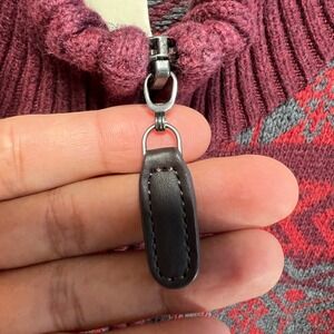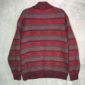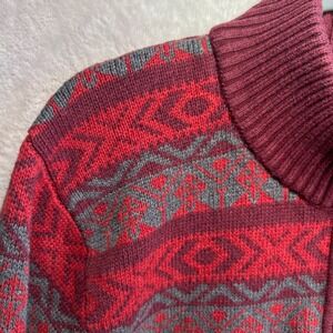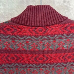 LL Bean Nordic Fair Isle Knit Sweater Mens Large TALL 1/4 Zip Red Gray Holidays